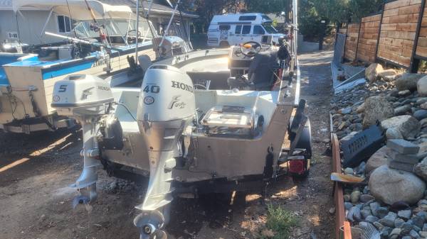 Newer honda bf40 four stroke outboard, as well as a matching 5hp kicker motor.