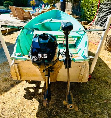 12’ fishing boat with trailer, motors, and accessories. 3.5HP Mercury motor ($2k) with 10hrs on it along with a Minn Kota trolling motor and battery. Oars, 4’ net and anchor included! $2,750 OBO