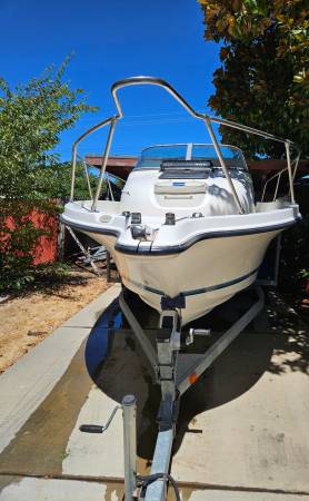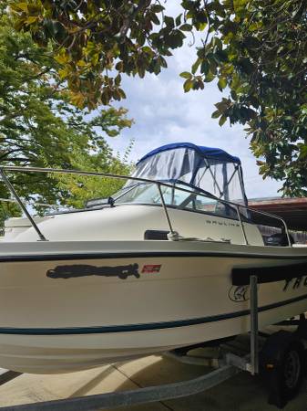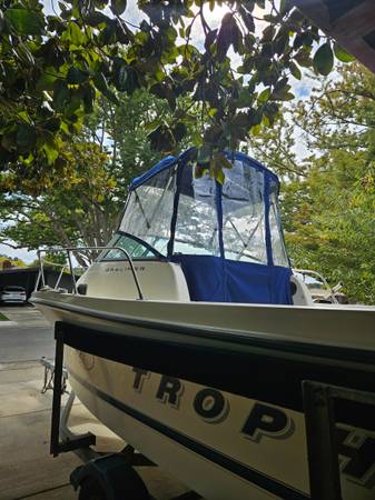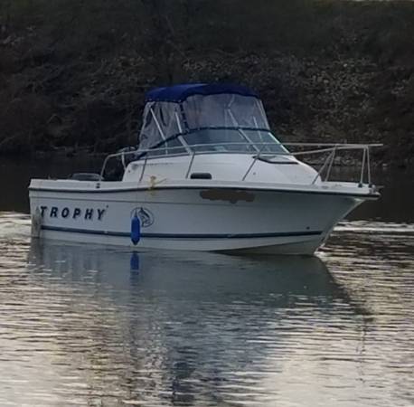 1999 bayliner trophy 2002 walkaround with a mercury 2 stroke 125hp SALTWATER with hydraulic steering it also has new impeller and thermostat also installed a new stainless steel prop also has kicker engine a evinrude 4 stroke with omc motor bracket with a shock for easy lowering and lifting electric troll master remote control steering which is hooked to trolling engine directly, 25 gallon bait tank, trim tabs, downrigger, garmin fishfinder with side view new front light bar, 80gallon gas tank,fully enclosed bimini top cb radio,am/fm cd player solid boat, everything works.