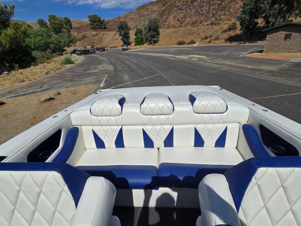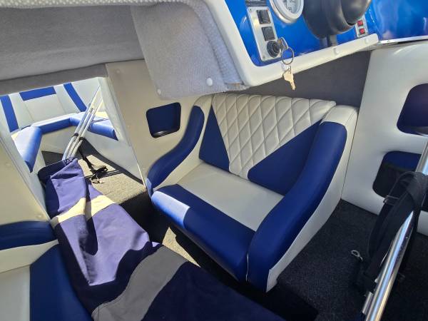 THE UPOLTERY IS NEW AT 8000$$. THE GELCOAT IS FLAWLESS NOT A SCRATCH . THE MOTOR IS SERVICED , THE COVER IS CUSTOM THE 500 HOURS ARE THOURALLY ENJOYED . ITS READY TO GO , CALL ME CALL ME CALL