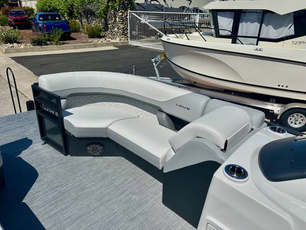 Your ideal pontoon has arrived—the Lowe® SS 230 WV. This special edition of one of our most popular boats brings together the most in-demand features at a very attractive price. The incredibly stable and strong chassis is outfitted with a premium TL package, which includes lifting strakes and wave tamers to amp up performance and minimize spray. The walkthrough layout is open and comfortable, and standard features include a bimini playpen cover, Kicker® audio system, premium console, chrome cupholders, flip-up cleats, and raised logo. Offered in your choice of four striking color combinations.