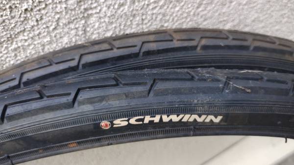 Schwinn bicycle tires. These tires are in like-new, unused condition, only slightly dusty from storage.
