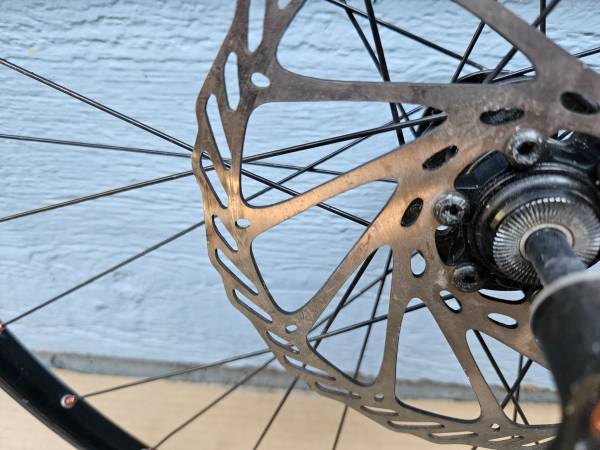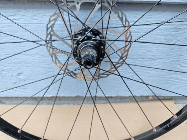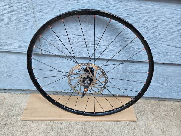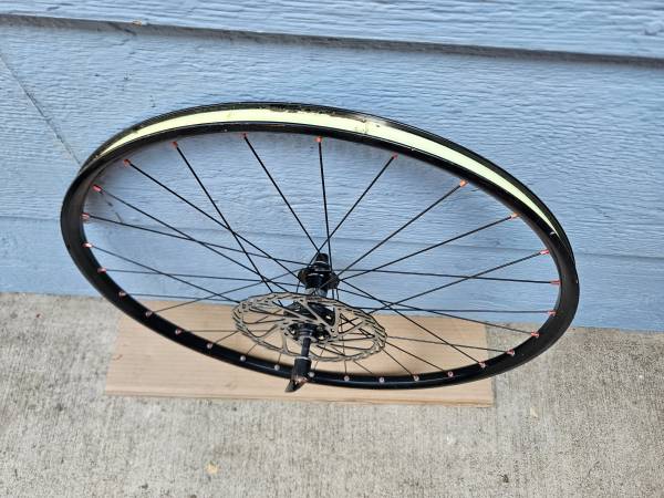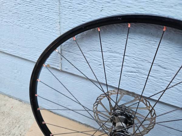 This 26" wheel is in good shape, some minor normal wear but no serious issues. I don't have a matching rear wheel, unfortunately, the donor bike had a mismatched set.
