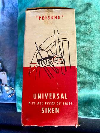 A NOS Persons universal bicycle wheel siren, Model 150, for your vintage bike. Made by the Persons-Majestic Mfg. Co. of Worcester, Mass. Pictures are the best description.
