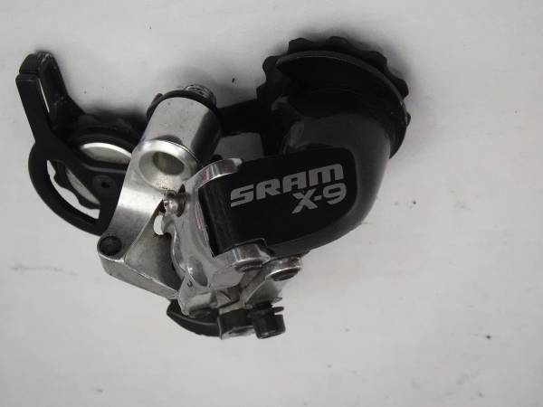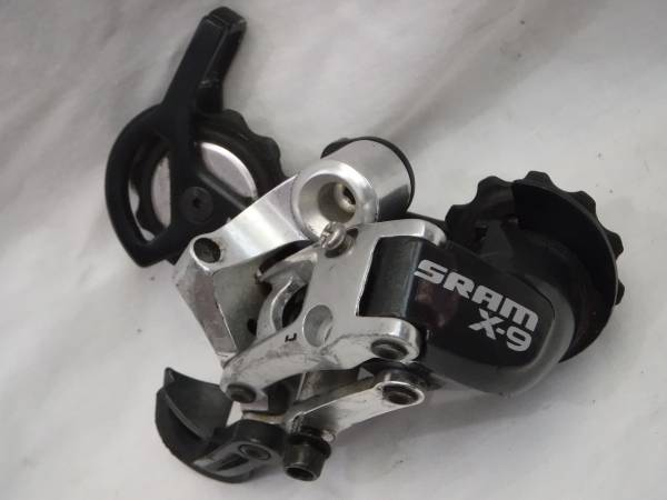 SRAM X9 Rear Derailleur 9 speeds for MTB, 1:1 Actuation Medium Cage good condition. Cage is perfectly aligned with the mounting. Unit exhibits typical wear.