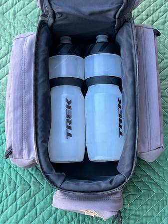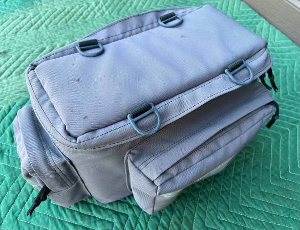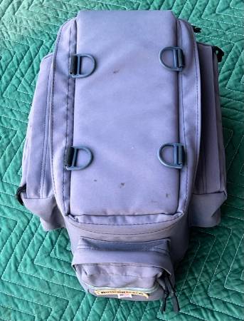 This rack trunk bag has three zipper pockets to organize your stuff and a large padded/insulated main compartment. Attaches to nearly any rack with Velcro straps. Bushwhacker brand. Very good...