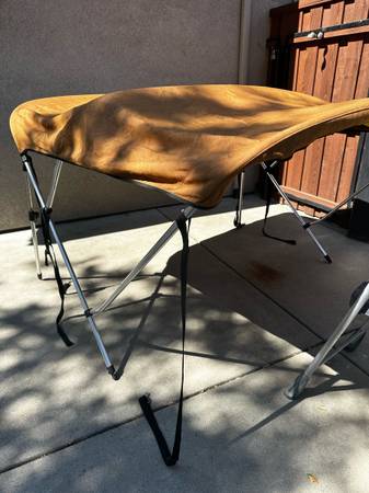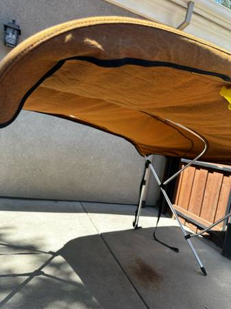 Westland 3 Bow Bimini SUNBRELLA fabric . Color Golden Brown 54”Tall X 72”Long X 68” Wide. Also includes rear bimini strut brace. In Excellent, barely used condition. Original cost over $600...