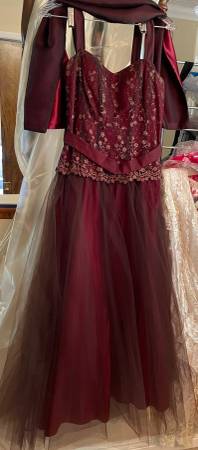 Blondie Nites Linda Bernell Red Burgundy Chiffon Prom Formal Ball Gown - $30 (CARMICHAEL)