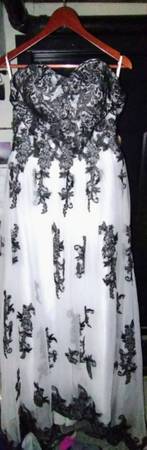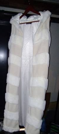 Tie up bustier top with flare and double mesh embroidery detail overlay and tail, see photo. White sleeveless hooded floor length vest coat. See photos. , have a number of formal and semi formal shoes and clutches and handbags to follow in next post.