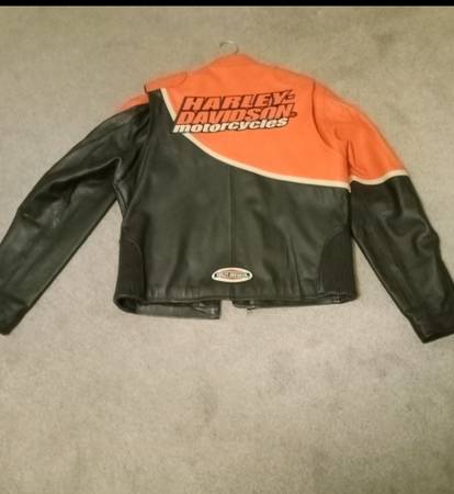 Harley-Davidson Racing Jacket Custom Orange and Black $250... Jacket is extra large, Leather and in New Condition Mike