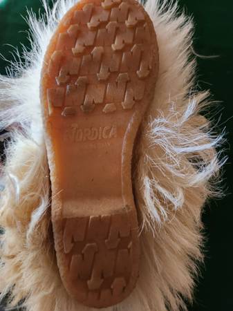 These vintage Nordica Yeti boots are amazing, a great combination of comfort and style. Nordica has been making quality ski apparel and equipment since 1939. Bought new in 1982 these genuine wedge heel fur boots are the perfect apres-ski footwear. Often called "Chewbacca" boots, they are warm and comfortable.