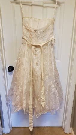 Gorgeous Tea Length Wedding Dress from David's Bridal 2011 Brand: Galina Style: WG3313 Size: 12 (runs small, bride typically wore size 6 dress) No alterations have been done Stored indoors Cash only...