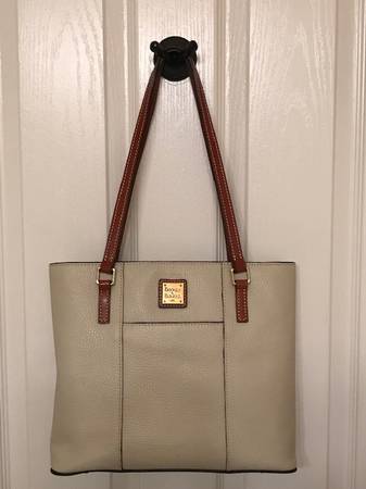 Pebble Grain Small Lexington Tote in Bone. Made from long-lasting Italian pebble leather with red lining. Has all the features you need: front and back slip pockets, one inside zip pocket, two inside slip pockets and a cell phone pocket, inside key hook, protective feet and a zipper closure for security. Has comfortable leather straps with a handle drop length 11.5". Measurements: H 10.5" x W 3.5" x L 11.75"' Barely used, This tote is in excellent condition (like brand new, just without the hefty price tag).