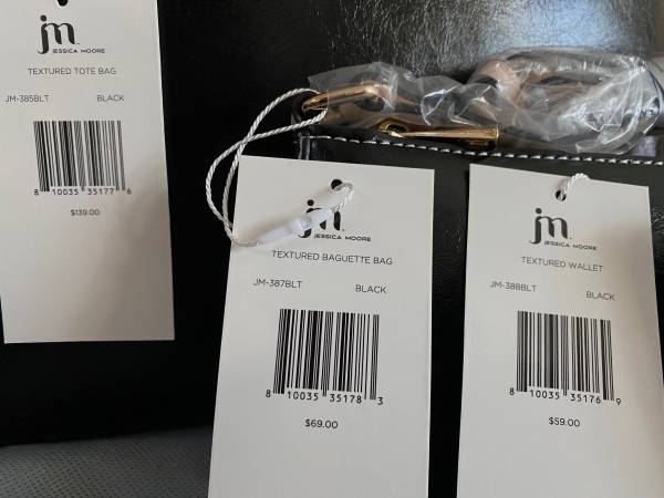 SELLING THIS REALLY NICE , " BRAND NEW " W/TAGS ATTACHED , 3 - PIECE MATCHING LARGE BLACK TOTE PURSE , BLACK CROSS BODY BANANA PURSE & WALLET .... ALL HAVE THEIR OWN STORAGE BAGS TOO ....