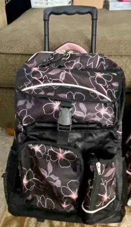 SELLING THESE SUPER CUTE , STINY FLORAL PATTERNED , ONE IS ROLLING , BACKPACK TYPE LUGGAGE PIECES …. I DID USE THE ROLLING ONE A FEW TIMES ( size 20” by 14” ) SELLING FOR $35 ... THE BACKPACK ONE IS...