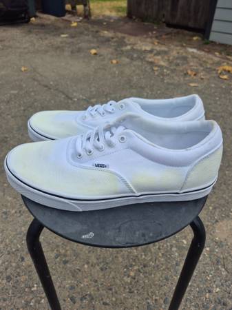Never Worn but Rinsed without Bleach causing temporary discoloration. Needs to be Bleached for Restoration.