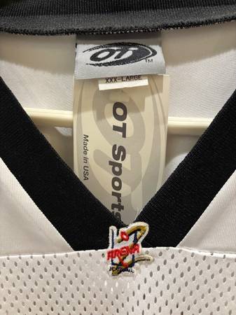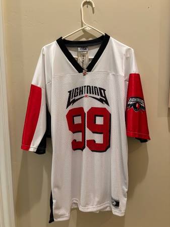This OT Sports officially licensed jersey is rare and features the Arena Football League team, the Stockton Lightning. #99 is both on the front and back of the jersey. This rare jersey is a size 3XL and is still in excellent condition. Made with high quality materials for durability and comfort. No tears, stains, or fading. Perfect for any Lightning fan or jersey collector. The asking price is $40. Pickup or meetup are both options.