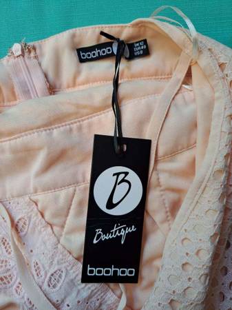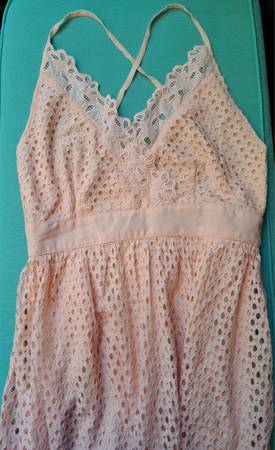 Cute dress with cut out & lace details, Size 8, NWT! Features: eyelet lace adjustable straps dress with a low back. Smoke free home.