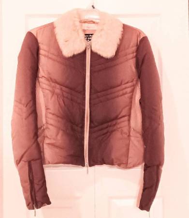 Please No Emails Call the telephone number and leave your message George Palomares of California Chic jacket with rabbit fur collar and down fill to keep you warm in style! American size Medium...