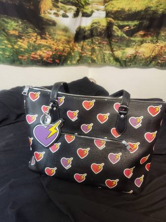 Im selling my Coach tote with the hearts and lightning bolts along with the matching key chain. Its valued over $200 but Im letting it go for $100 firm. It has light wear and tear, see photos but...
