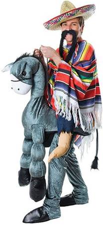 Ride into town on your donkey with this ultra cool Mexican Amigo fancy dress costume. This fantastic Mexican costume will be great for any Mexican party or Cinco de mayo themed event 0r stir the pot and go as Hakeem Jefferies! This costume gives the illusion of a Mexican man riding a donkey where your legs fit in the back and you hold onto the reigns at the front. Sombrero hat and mustache not included One size fits all.