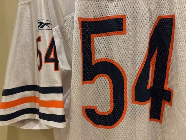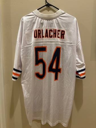 This Reebok NFL licensed jersey features #54 of the Chicago Bears, linebacker Brian Urlacher. Both on the front and back of the jersey. This vintage jersey is a size 2XL and is still in excellent condition. Made with high quality materials for durability and comfort. No tears, stains, or fading. Perfect for any Bears fan or jersey collector. The asking price is $50. Pickup or meetup are both options.