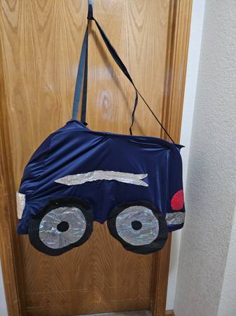 Adorable car costume. Needs the headlights "replaced" (the reflective fabric circles must have fallen off and we didn't notice when moving - could easily be replaced with new circles and some fabric glue....could even use puck lights and have them actually light up!). One size fits all...if you adjust the length of the "suspenders".