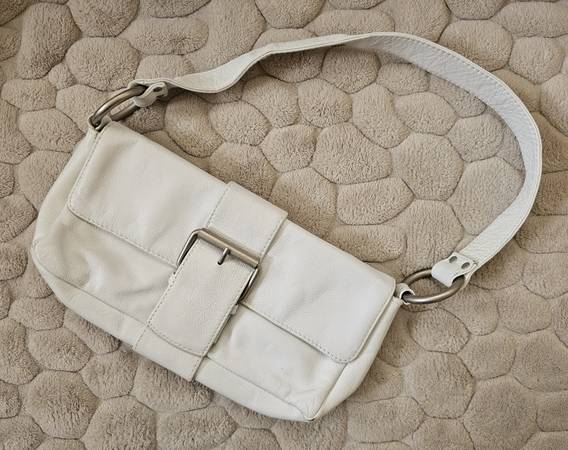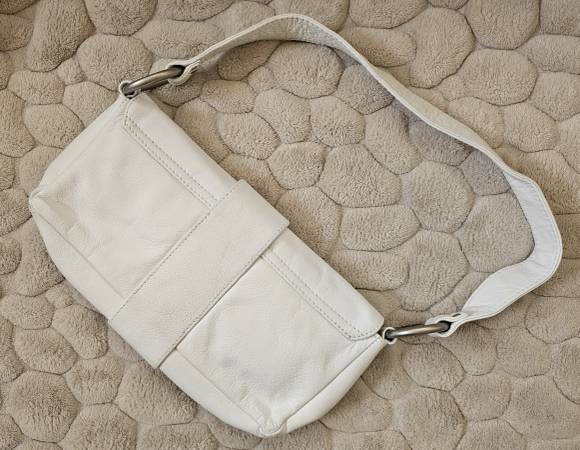 Very nice leather satchel handbag by Wilsons Leather. Some slight discoloration on interior edges of fold over flap which may come off with a good leather cleaner.