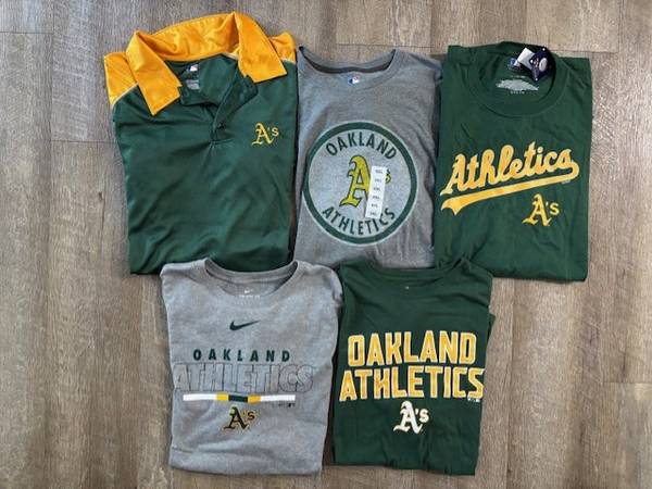 I have a lot of 5 Oakland A's fan t-shirts available for sale. All are unique and retro. Still in brand new or lightly used condition. All shirts in the this lot are mens size 2XL. Zero stains, tears, or fading. Perfect for any baseball or A's fan. The asking price is $10 for each for all for $40. Pickup or meetup are both options.