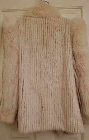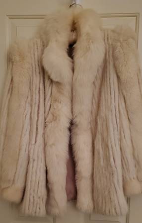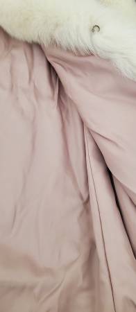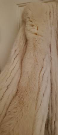 Elegant S/M Women's Ivory Fox Fur Coat: 1 Hidden hook and eye closure in front. Natural Fox Fur, long and extremely soft to the touch. Large full fur collar and shoulders with rose colored lining....