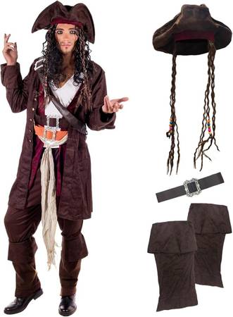 fun shack Pirate Smuggler Costume for Men - Deluxe Outfit with Hat, Wig, Belt & Boot Covers, halloween costumes for men (Medium)- $39.99