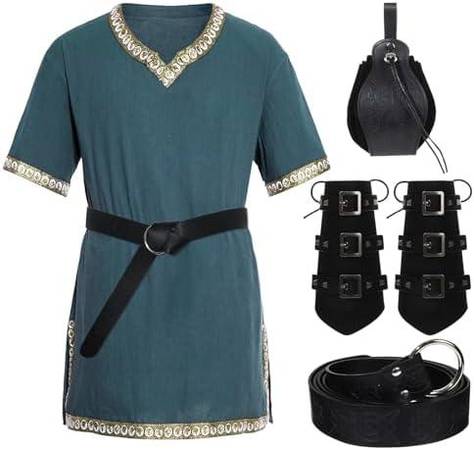 5Pcs Mens Medieval Costume Halloween Renaissance Tunic Viking Knight Shirts Warrior Cosplay Costume with Belt Arm Guards, XL- $19.99