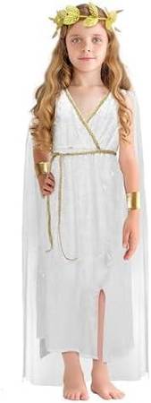 JEGERMIG Greek Costume Kids Toga Roman Goddess Athena Children Halloween Cosplay Grecian Dress Up Outfit Set, L- $19.99