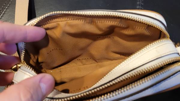 Auth COACH Willow Camera Bag Color Block C0695 Cream Brown Leather - Women's