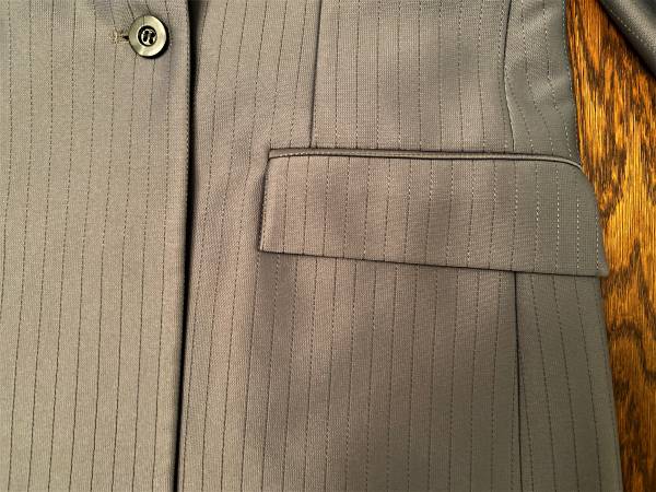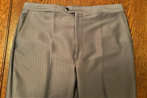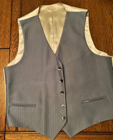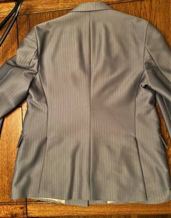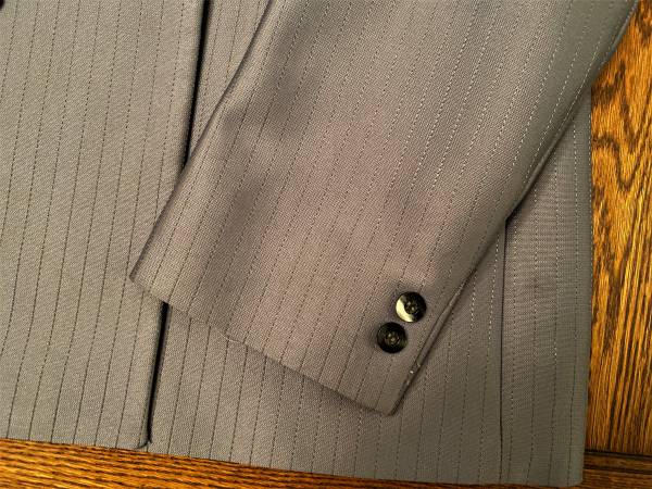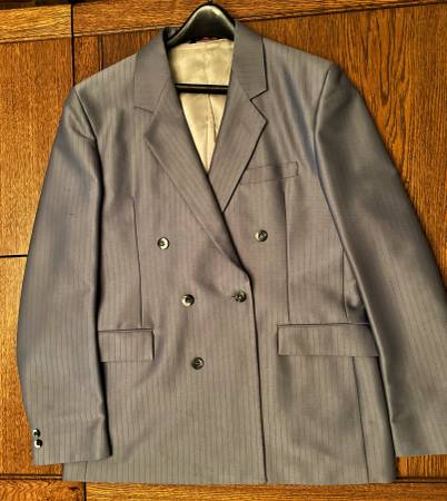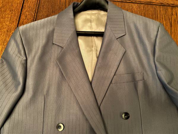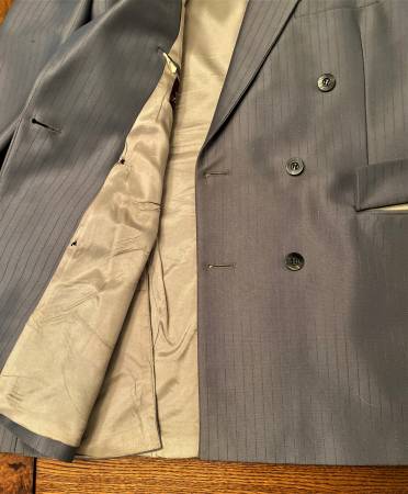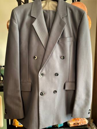 BEATIFUL PRIMO Gray Stripe Double Breasted 3 Piece Suit. JACKET, SHOULDER 20", ARM LENGTH FROM SHOULDER 27", LENGTH FROM COLLAR TO HIM 32" PANTS, 36" WAIST, INSEAM 32",LENGTH FROM WAIST TO HIM 43"...