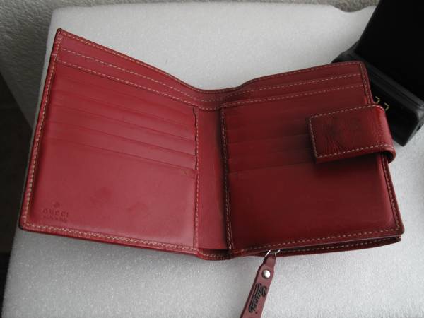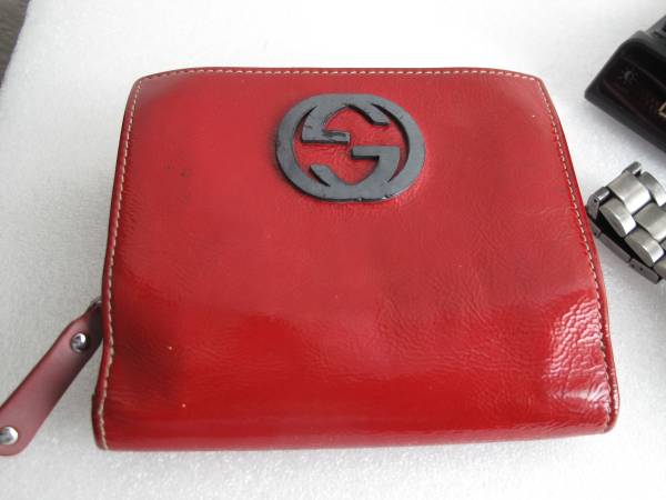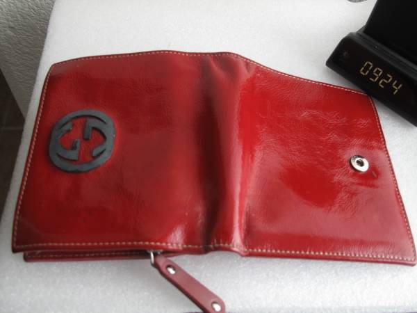 Vtg. Gucci Red Patent Leather Bi-Fold wallet available. Looks really good, no real issues to note. Just picked up at a thrift store with intentions as a gift for my wife. But she said Naw, see if someone else wants it. So here we are. The serial number is stamped in one of the card slots. Actual item you see here. If interested, Text/Email/Call me to check it out in person Two7nine two2four Four3four Three.