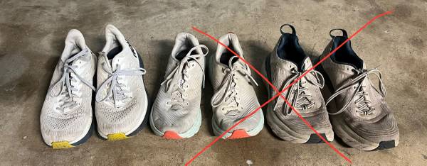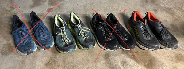 Hoka Running Shoes Mens & Womens Various sizes Used, needs cleaning 5 pairs for $100 or $30ea Mens - Clifton 7 blue sz 10 - SOLD Clifton 5 black sz 11.5 SOLD Stinson ATR 4 green sz 11.5 (slight...