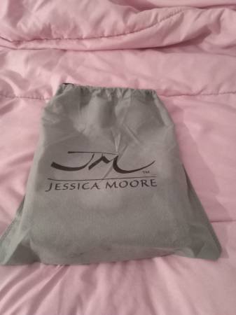 Chain & Faux Leather Strap, Magnetic Closure with golden ring, Crossbody, Bag width: 8 in, Bag Depth: 2 1/2 in. Lining color: Black and White Stripe. Comes with dust bag. Retail price: $99. I’m...