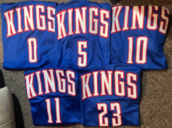 Malik Monk Sacramento Kings Jerseys in multiple styles pictured of DeAaron Fox, Domantas Sabonis. Malik Monk & Keegan Murray. Black Kings Cursive: Fox, Monk, Sabonis XL & 2xl, 100yr City Edition Blues-Fox in XL & 2xl, Sabonis in XL& 2xl, Monk in XL & 2xl, Murray in XL & 2xl. SacTown Cursive-Black Fox in XL, City Edition SacTown Black w/blue-red trim & Checkboard sides Fox in XL. Sabonis #11 XL in white, Devin Carter #22 XL in white, Keon Ellis #23 XL in white. Also some autographed items/jerseys and other merchandise available as well. Call 📞 message 91661332ThreeFour