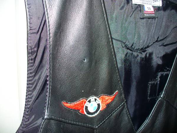 Men's Fox Creek Black Leather Motorcycle Vest available. Sz. 50 and in excellent condition. Made here in the USA. Actual item you see here. Prefer you check it out in person, then make a decision. If interested, Text/Email/Call me. Two7nine two2four Four3four THree.