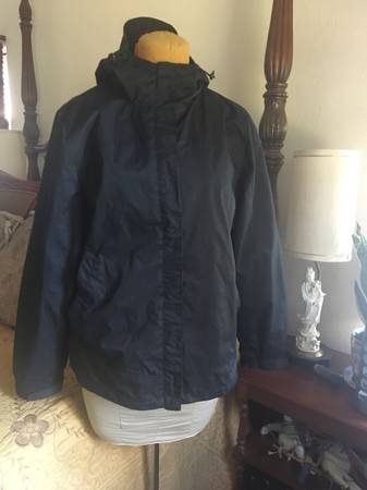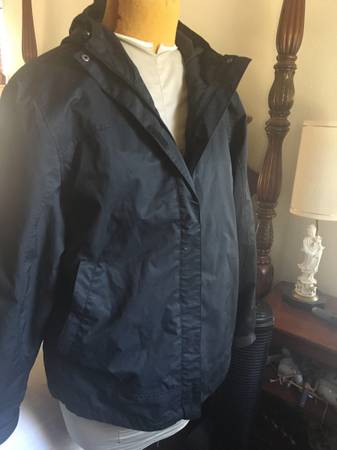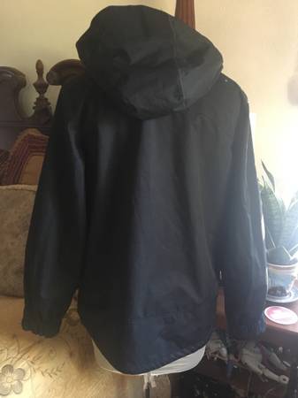 NEW Size S Reversible Navy Blue/ Gray~Med black raincoat hooded - $25 (Sacramento)