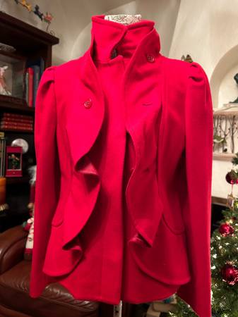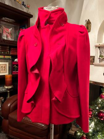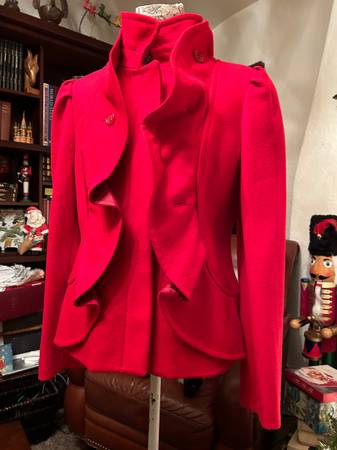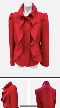 Women’s size 8 fancy ruffled vintage Red short jacket blazer coat. Multiple high couture details Tailored look. Red carpet runway statement. Chadwick’s wool blend. $150