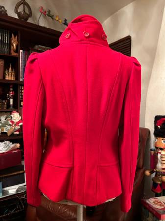 High Couture designer details including high-quality wool material looks and feels luxurious. Cherry red color will make you pop and looks good dressed up with cocktail dress or dress down with jeans. Top-of-the-line wall material will keep you warm along with the double collar.