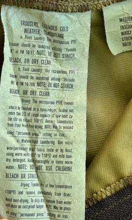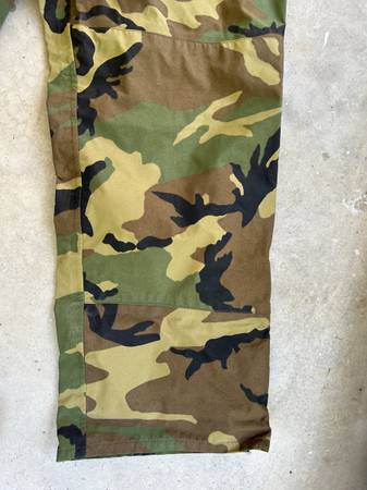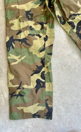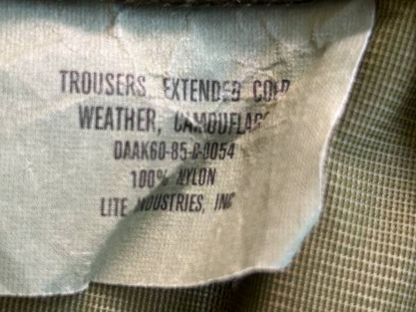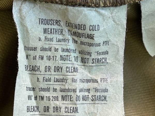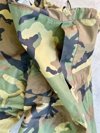 VINTAGE US ARMY EXTENDED DESERT COLD / WET WEATHER CAMOUFLAGE TROUSERS PANTS . TO BE WORN OVER FIELD CLOTHING. LIKE NEW CONDITION. WAIST 31" TO 35" $30 SPORTING HUNTING