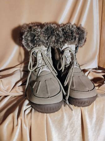 Super warm sheepskin lined ladies boots. They are practically brand new only worn once, sadly, they are too small. Please see all pictures to see what great shape they are in. From clean and smoke...