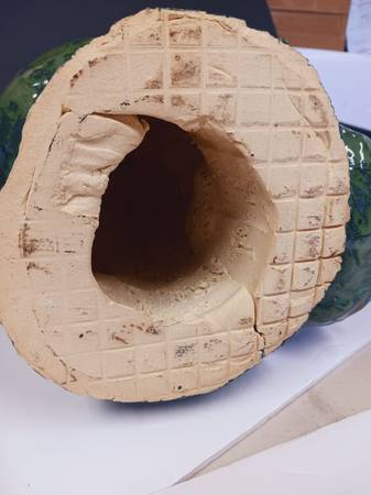 Unique sci fi sculpture monster life size head made of clay with hi fired glazes