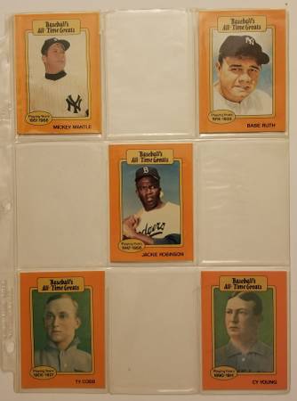 1987 Baseball's All-Time Greats by Hygrade 5 baseball cards Mickey Mantle Babe Ruth Jackie Robinson Ty Cobb Cy Young