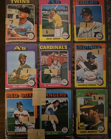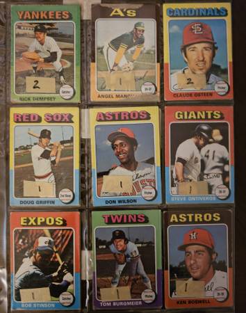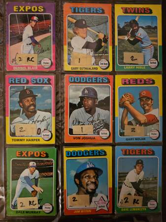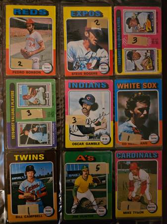 Topps 1969 deckle edge 1975 mini about 100 baseball cards 1969 Yaz, B. Gibson 1975 Kaline, J. Hunter, Killebrew