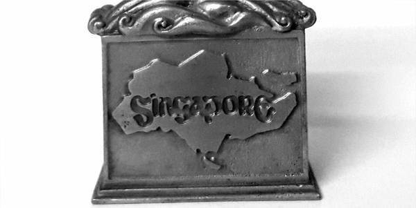 MerLion Singapore Paperweight 3 3/4'' Tall Solid Souvenir from Singapore by Tumasek Pewter, perfect for the work desk. MerLion Singapore Paperweight/ Asian Lion Head Serpent Dragon Solid Souvenir by Tumasek Pewter. Approx weight 6 oz