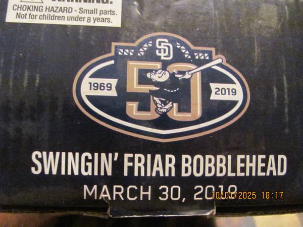 2019 50th Anniversary S.D. Padres Swingin Friar Bobblehead (Blue) I have 2. in boxes $25.00 each